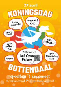 Ook dit jaar organiseren de vrijwilligers van speeltuin ’t Kraaienest traditiegetrouw weer een waar Koningsfeest voor alle Bottendalers